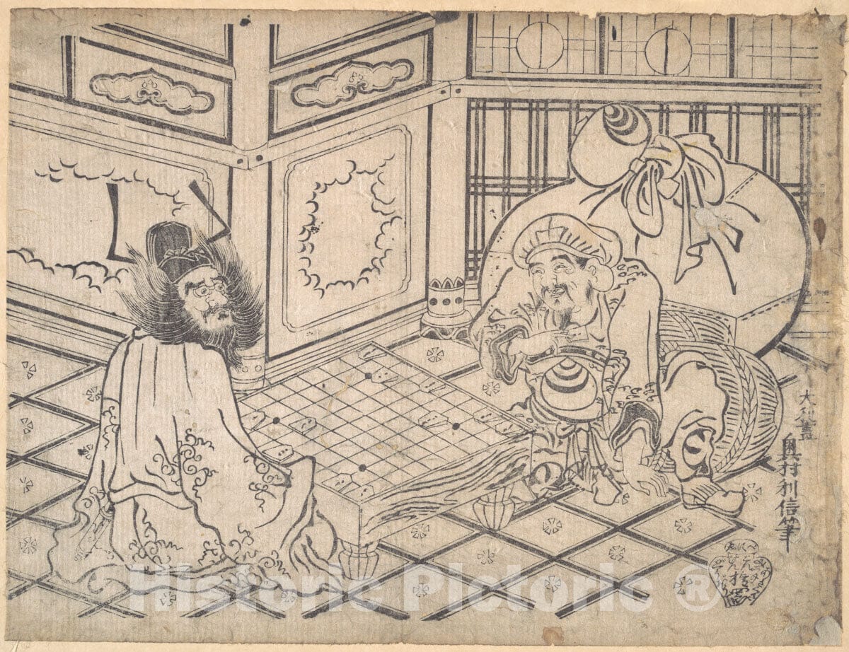 Art Print : Okumura Toshinobu - Daikoku and Shoki Playing Chess - Japan : Vintage Wall Art
