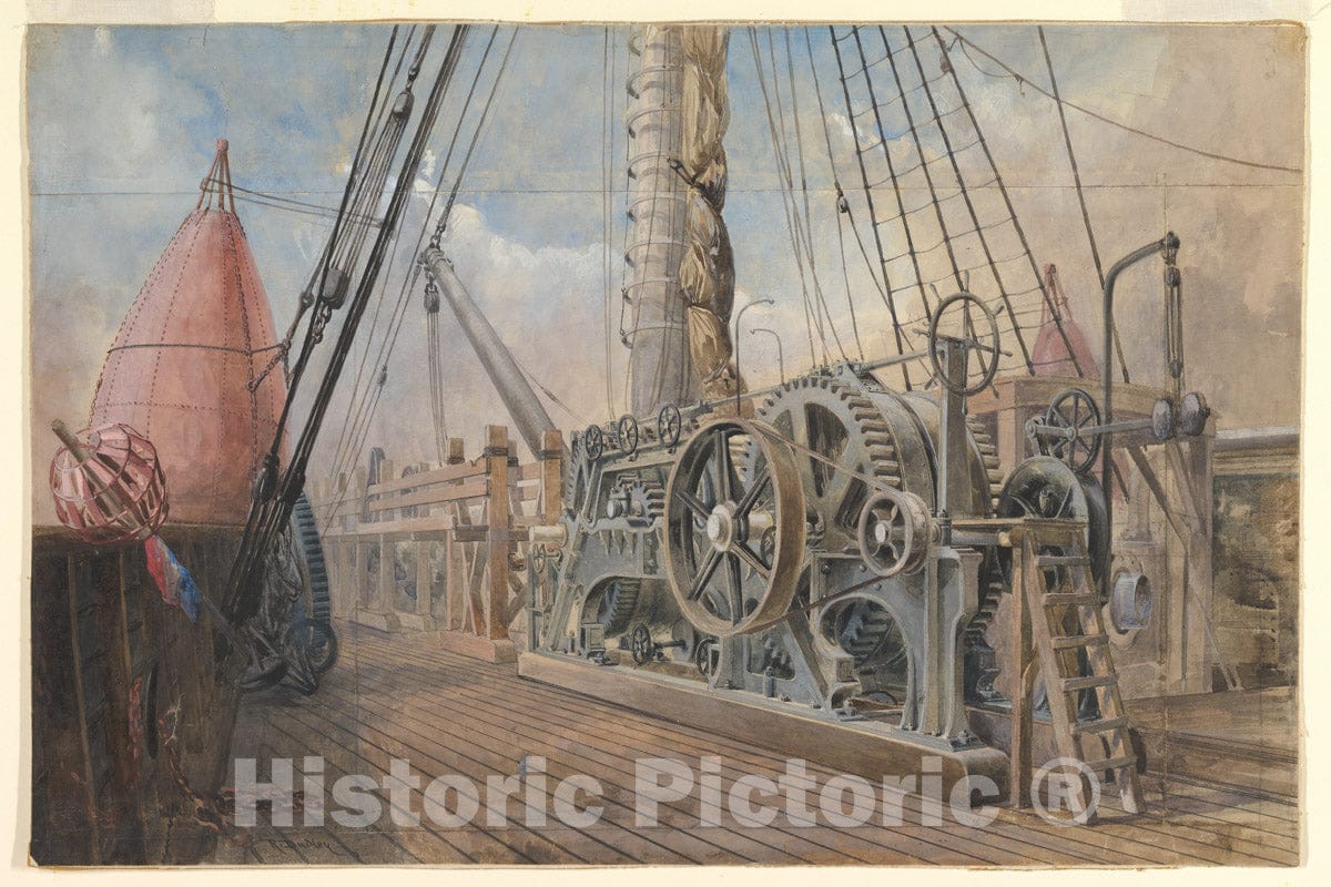 Deck of the Great Eastern, the Cable Trough, etc., 1866 - British, 1826-1909 - Artist Nationality: British - Original Medium, Materials or Technique: Watercolor over graphite with touches of gouache