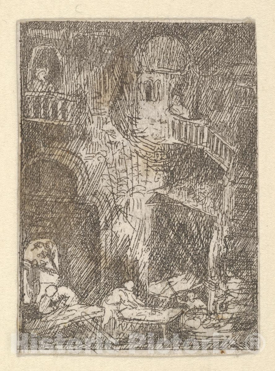 L'Escalier (The Staircase) - French, Montrelais 1822-1885 Sevres - Artist Nationality: French - Original Medium, Materials or Technique: Etching