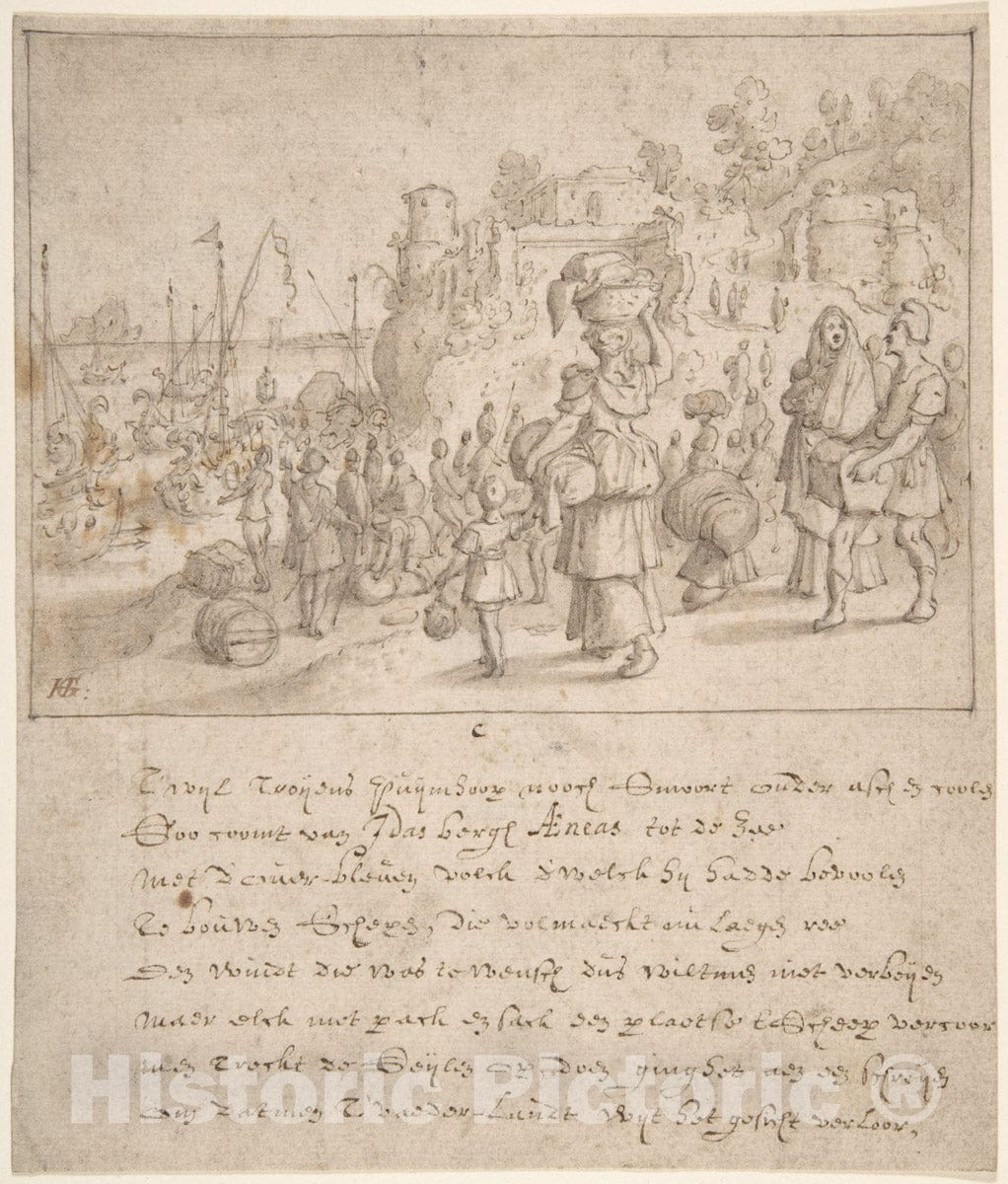 Leaving Troy - Netherlandish, Antwerp 1573-1647 Antwerp-Netherlandish, Muhlbracht 1558-1617 Haarlem - Artist Nationality: Netherlandish-Netherlandish - Original Medium, Materials or Technique: Pen and brown ink, brush and brown wash, over graphite. Vertical lines in red chalk