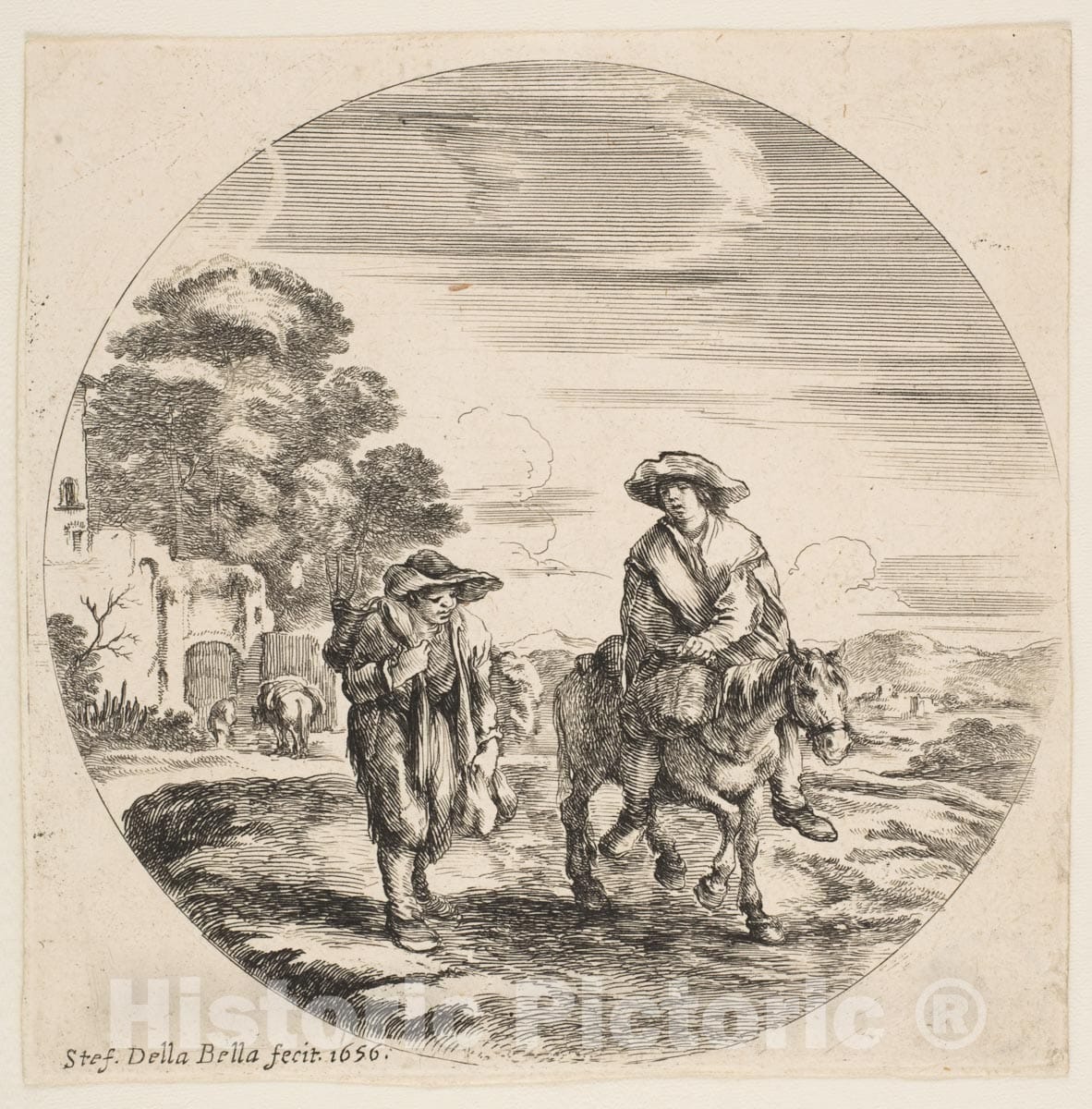 Landscape with Two Peasants, One Riding a Horse, from 'Landscapes and seaports' (Paysages et ports de mer, dans des ronds) - Italian, Florence 1610-1664 Florence - Artist Nationality: Italian - Original Medium, Materials or Technique: Etching; second state of two