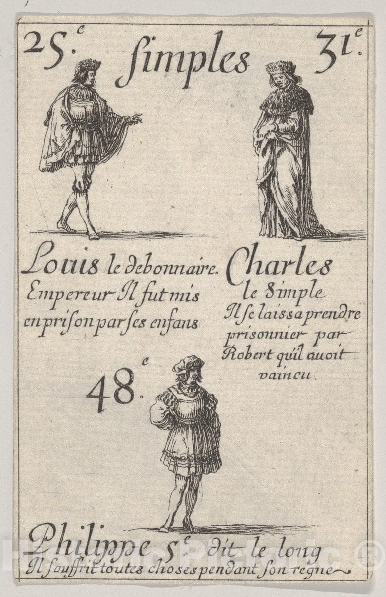 • .Art Print : Stefano Della Bella - Louis le debonnaire. Charles le Simple, from 'Game of The Kings of France' (Jeu des Rois de France) : Vintage Wall Art