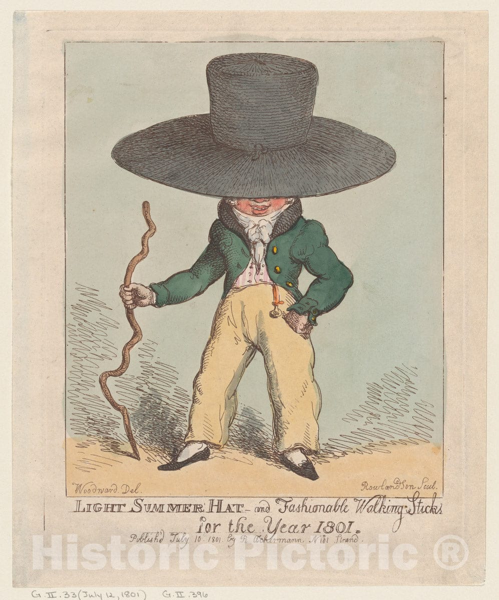 Art Print : Thomas Rowlandson - Light Summer Hat and Fashionable Walking Sticks for The Year 1801 : Vintage Wall Art
