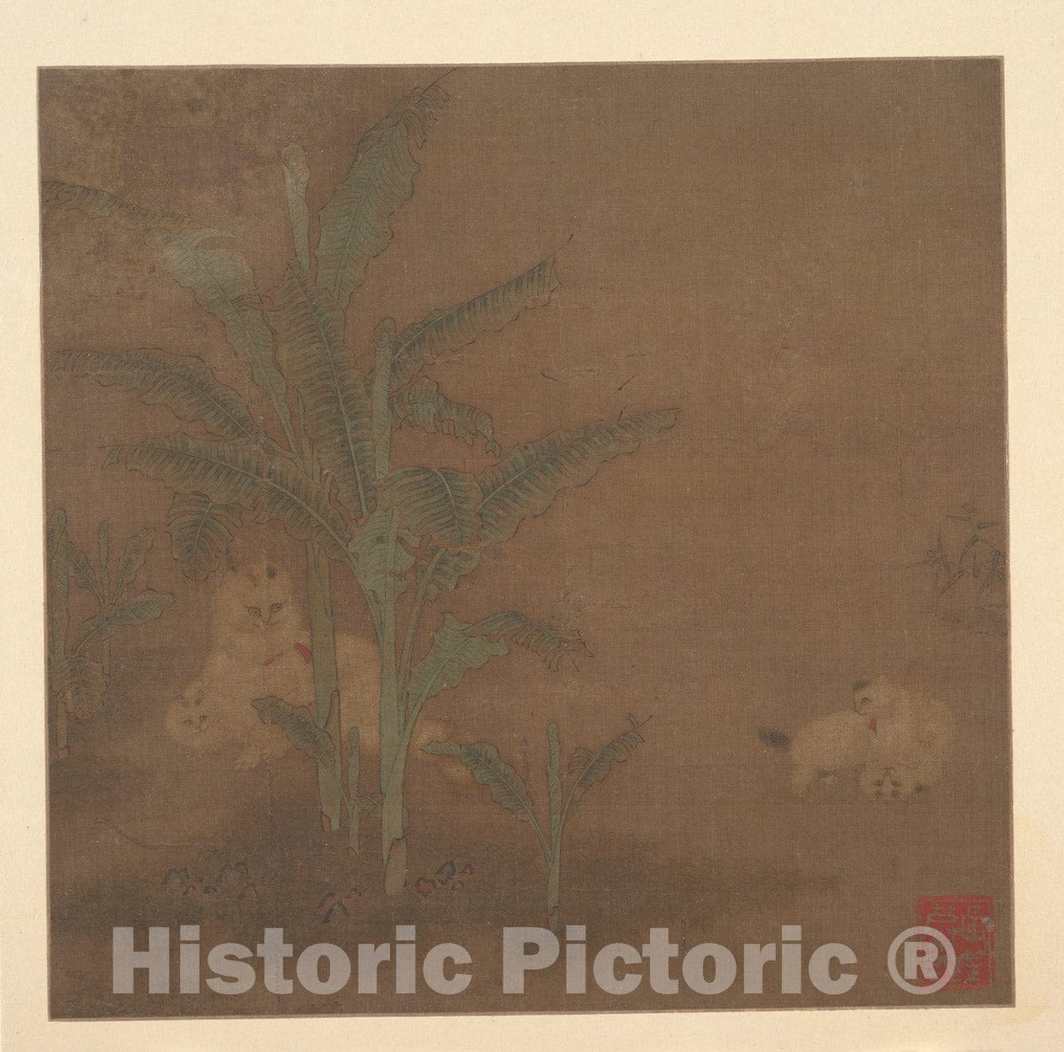 Art Print : Unidentified Artist - Frolicking Kittens Under a Banana Tree - China - Ming Dynasty (1368–1644) : Vintage Wall Art