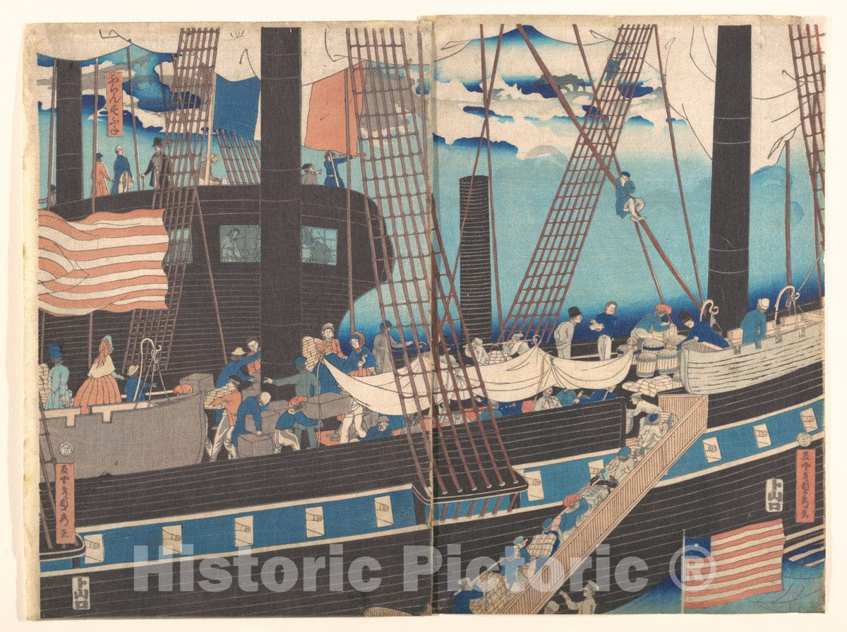 Art Print : Utagawa (Gountei) Sadahide - “Yokohama Trade: Westerners Loading Cargo” - Japan : Vintage Wall Art