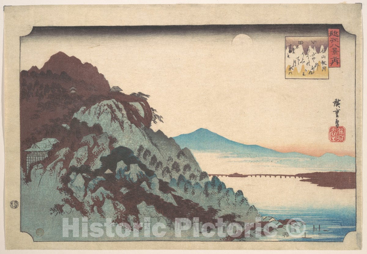 • .Art Print : Utagawa Hiroshige - The Autumn Moon at Ishiyama on Lake Biwa. - Japan : Vintage Wall Art