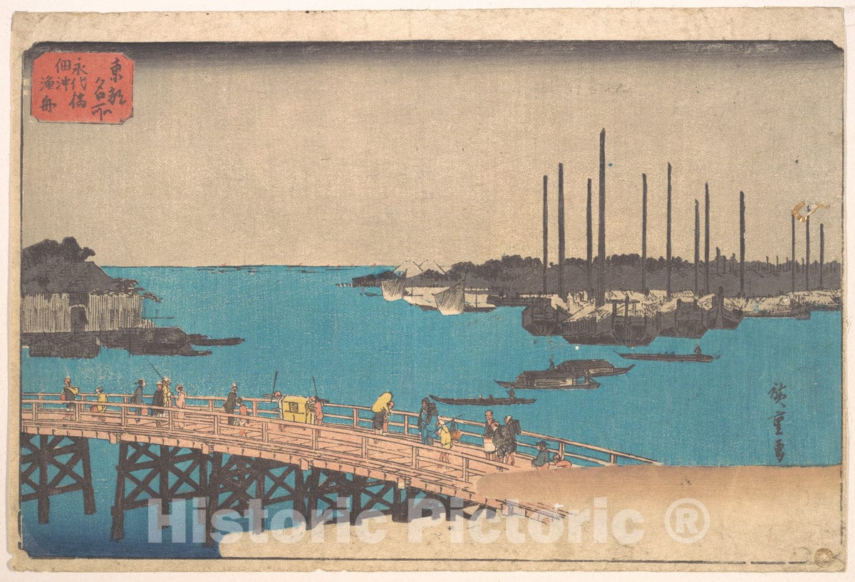Art Print : Utagawa Hiroshige - Eitai Bashi Tsukudajima Ryosen - Japan : Vintage Wall Art