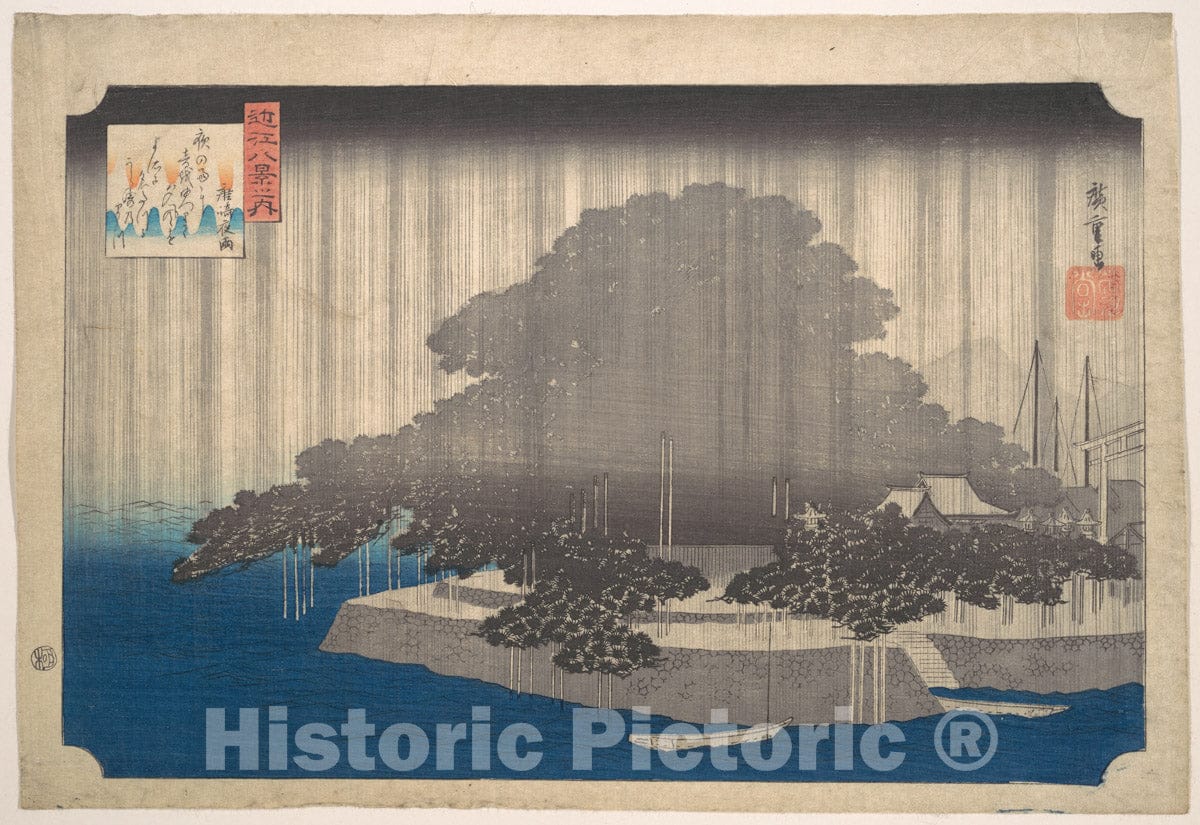Evening Rain on the Karasaki Pine - Japanese, Tokyo (Edo) 1797-1858 Tokyo (Edo) - Artist Nationality: Japanese - Original Medium, Materials or Technique: Polychrome woodblock print; ink and color on paper