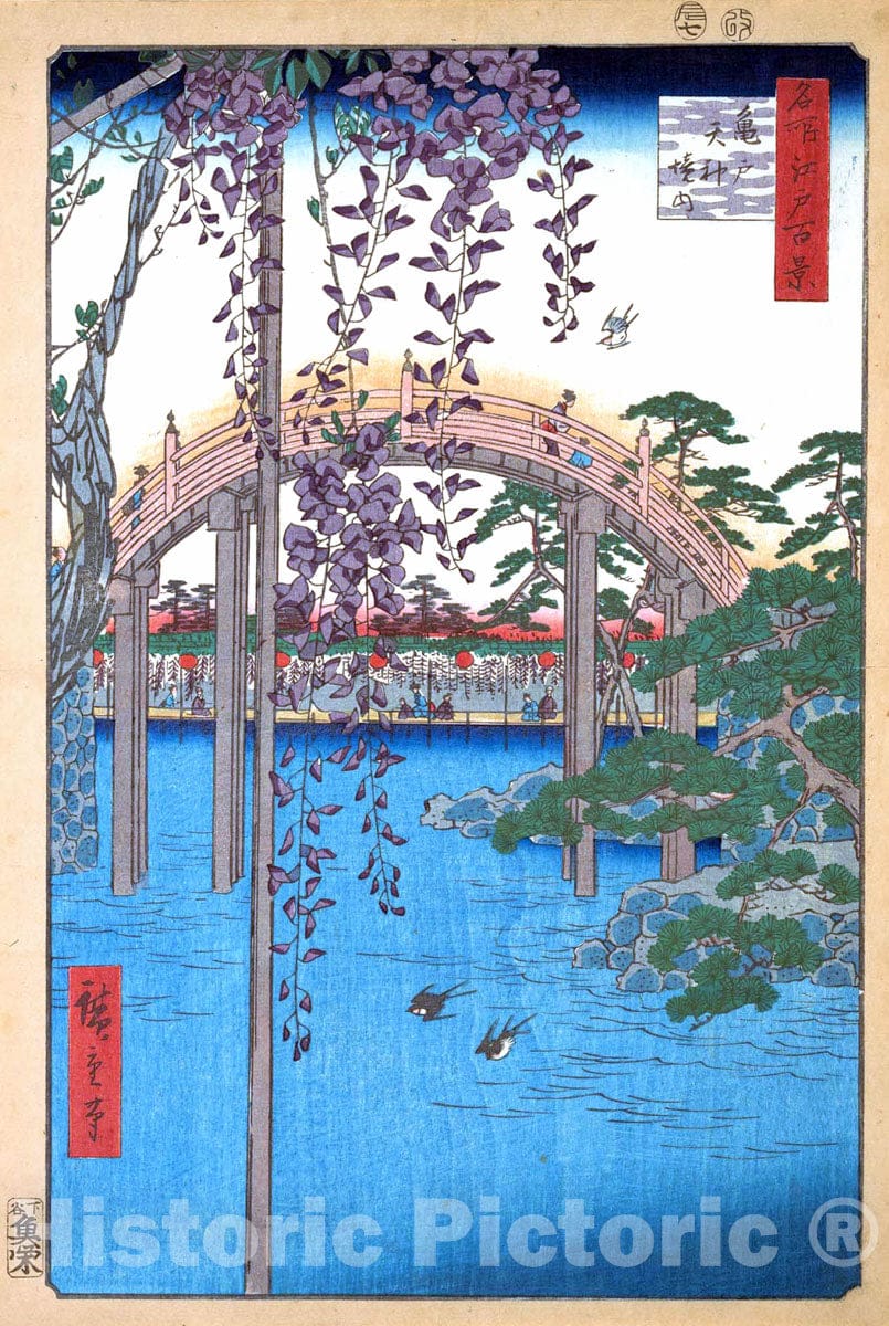 Art Print : Utagawa Hiroshige - in The Kameido Tenjin Shrine Compound - Japan : Vintage Wall Art