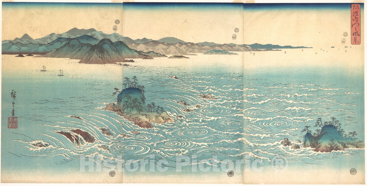 Rapids at Naruto - Japanese, Tokyo (Edo) 1797-1858 Tokyo (Edo) - Artist Nationality: Japanese - Original Medium, Materials or Technique: Triptych of polychrome woodblock prints; ink and color on paper
