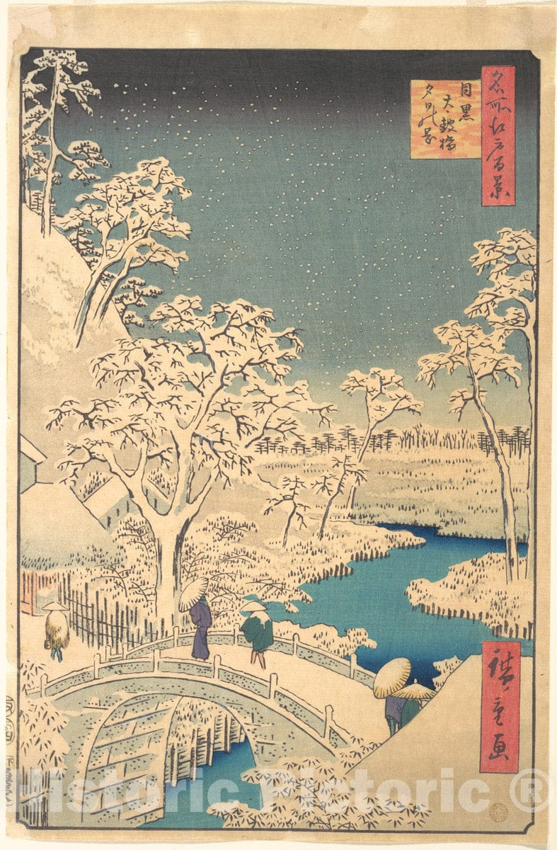 Art Print : Utagawa Hiroshige - Taiko Bridge, Meguro, on a Snowy Evening - Japan : Vintage Wall Art