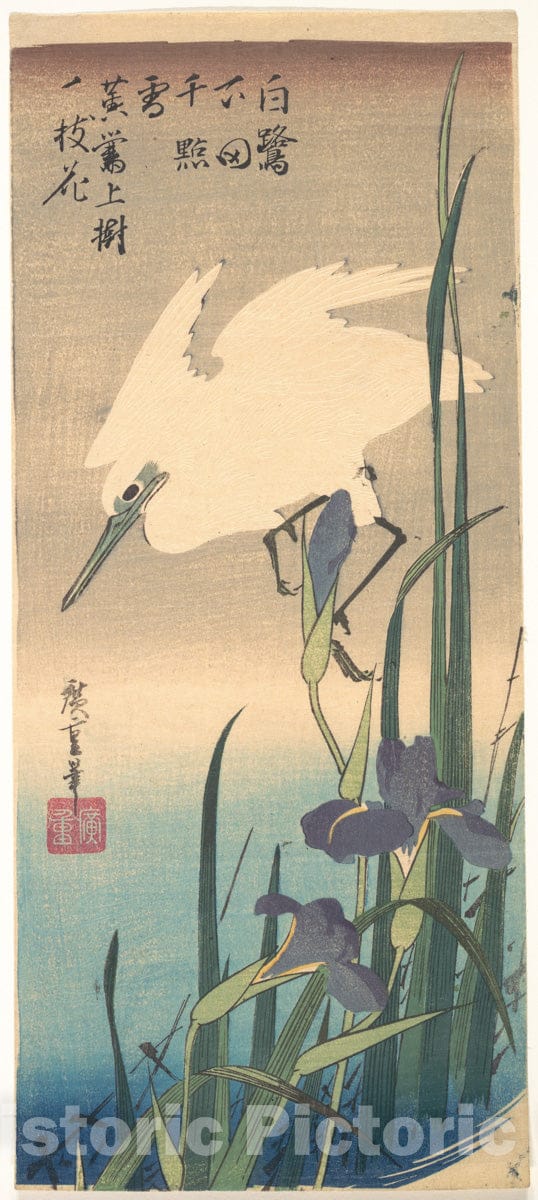 Art Print : Utagawa Hiroshige - White Heron and Iris - Japan : Vintage Wall Art