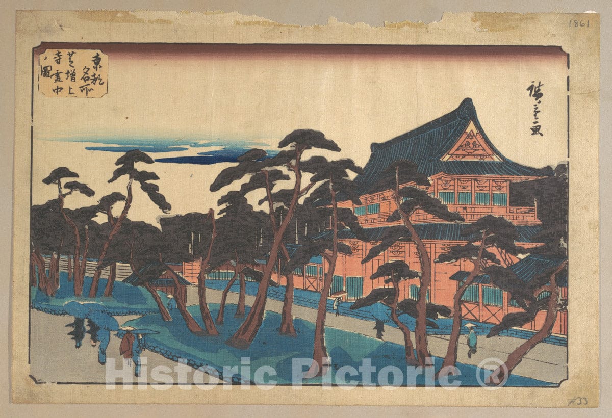 Zojoji Temple at Shiba in Snow - Japanese, Tokyo (Edo) 1797-1858 Tokyo (Edo) - Artist Nationality: Japanese - Original Medium, Materials or Technique: Polychrome woodblock print; ink and color on paper