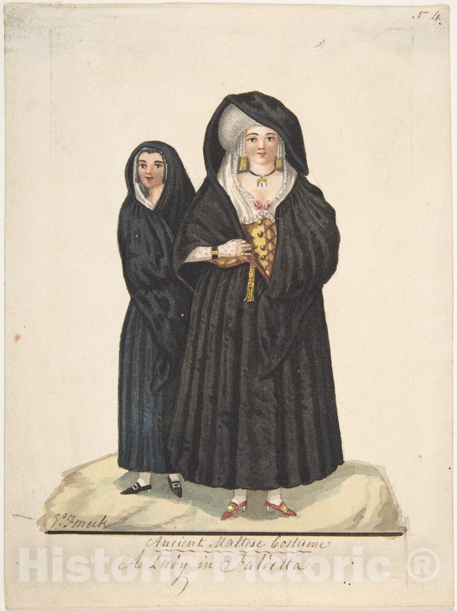 Ancient Maltese Costume, A Lady in a Faldetta - British (?), active 19th century - Artist Nationality: British - Original Medium, Materials or Technique: Watercolor and gouache over graphite