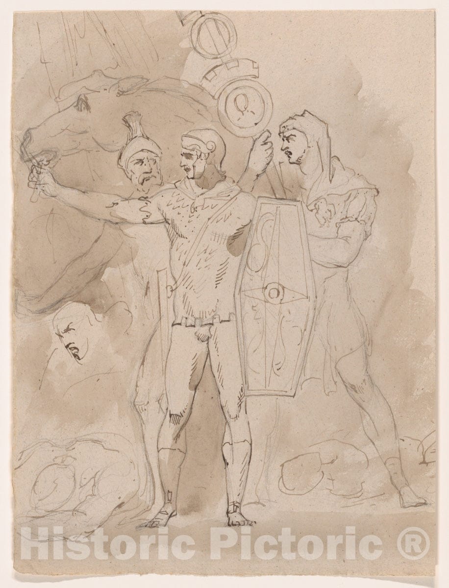Classical Military Subject - British, London 1751-1801 London - Artist Nationality: British - Original Medium, Materials or Technique: Pen and brown ink over graphite, with brown wash
