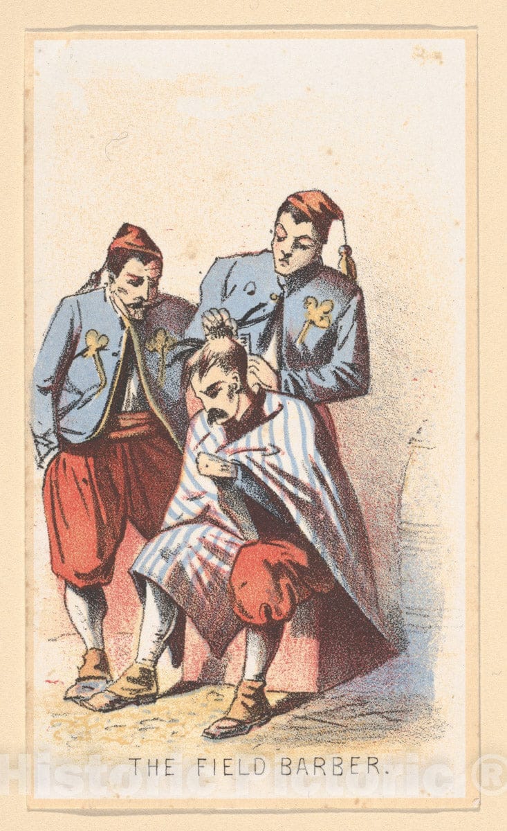 Life in Camp, Part 2: The Field Barber - American, Boston, Massachusetts 1836-1910 Prouts Neck, Maine-Boston, Massachusetts-London - Artist Nationality: American-American-British - Original Medium, Materials or Technique: Color lithograph