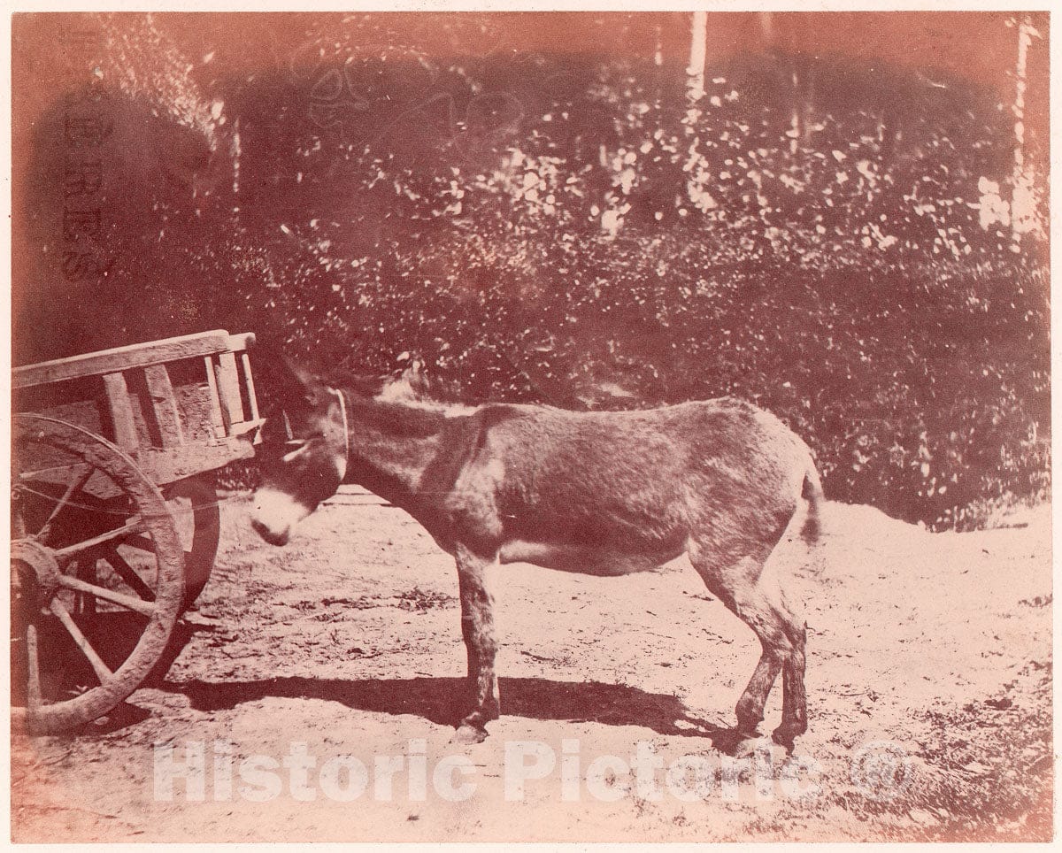 Ane attache a une charette - French-French, active 1851-55 - Artist Nationality: - Original Medium, Materials or Technique: Salted paper print (Blanquart-Evrard process) from paper negative