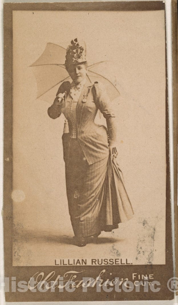 Lillian Russell, from the Actresses series (N664) promoting Old Fashion Fine Cut Tobacco - Artist Nationality: - Original Medium, Materials or Technique: Albumen photograph