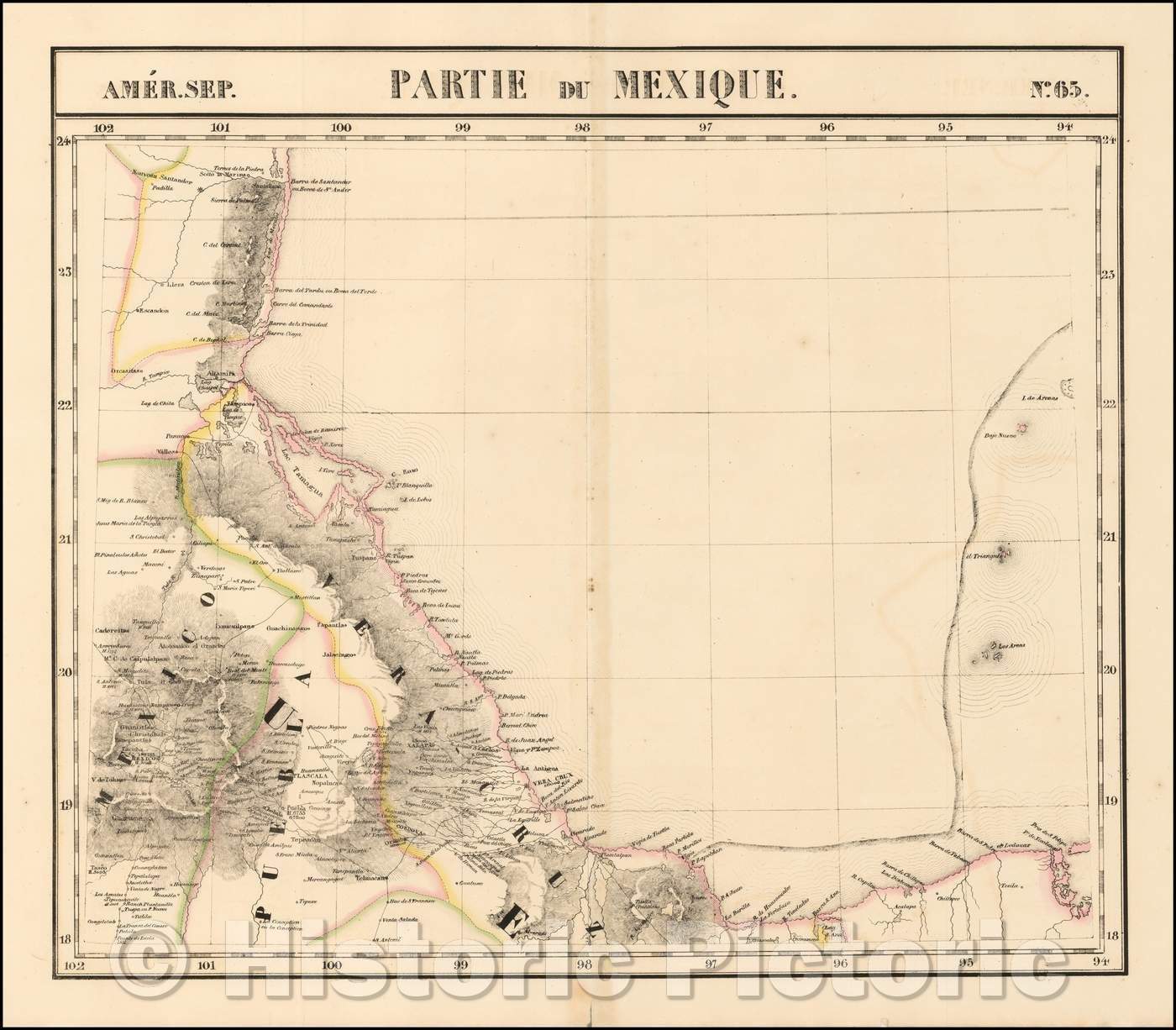 Historic Map - Amer. Sep. No. 65. Partie Du Mexique [Gulf Coast, Mexico, Puebla, Vera Cr :: No. 65. Part Of Mexico [Gulf Coast, Mexico City, Puebla, Verac, 1825 - Vintage Wall Art