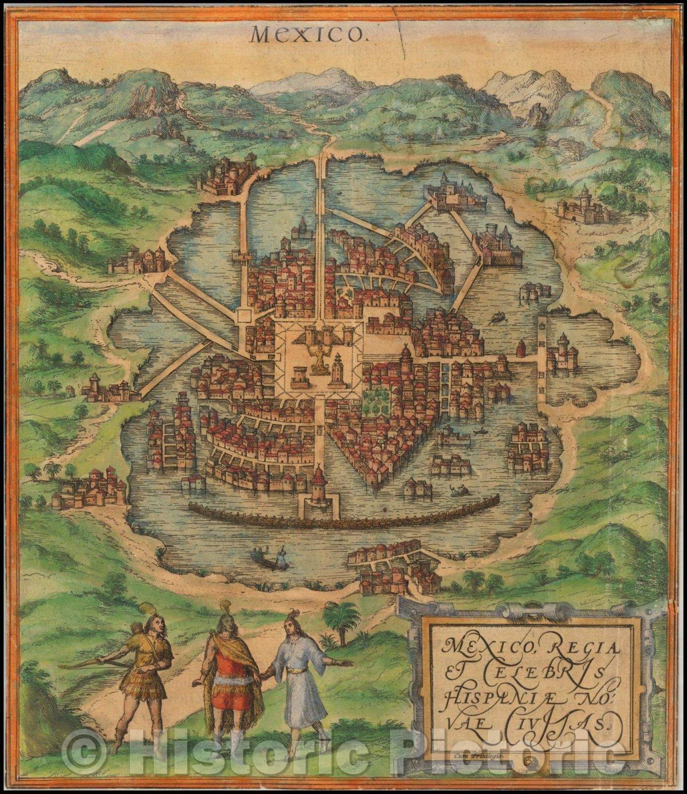 Historic Map - Mexico Regia et Celebris Hispaniae Novae Civitas/New Mexico City Royal and celebrity in Spain, 1572, Georg Braun - Vintage Wall Art