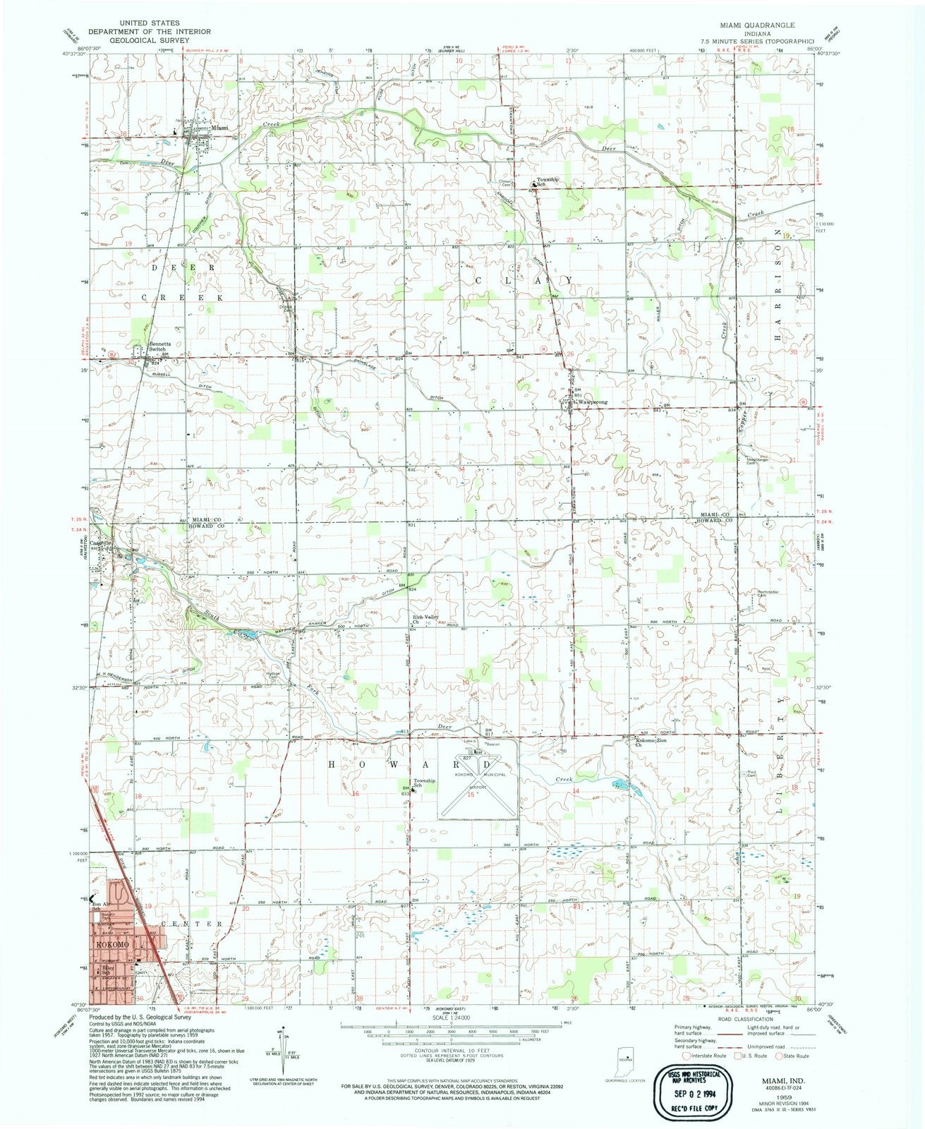 1959 Miami, in - Indiana - USGS Topographic Map