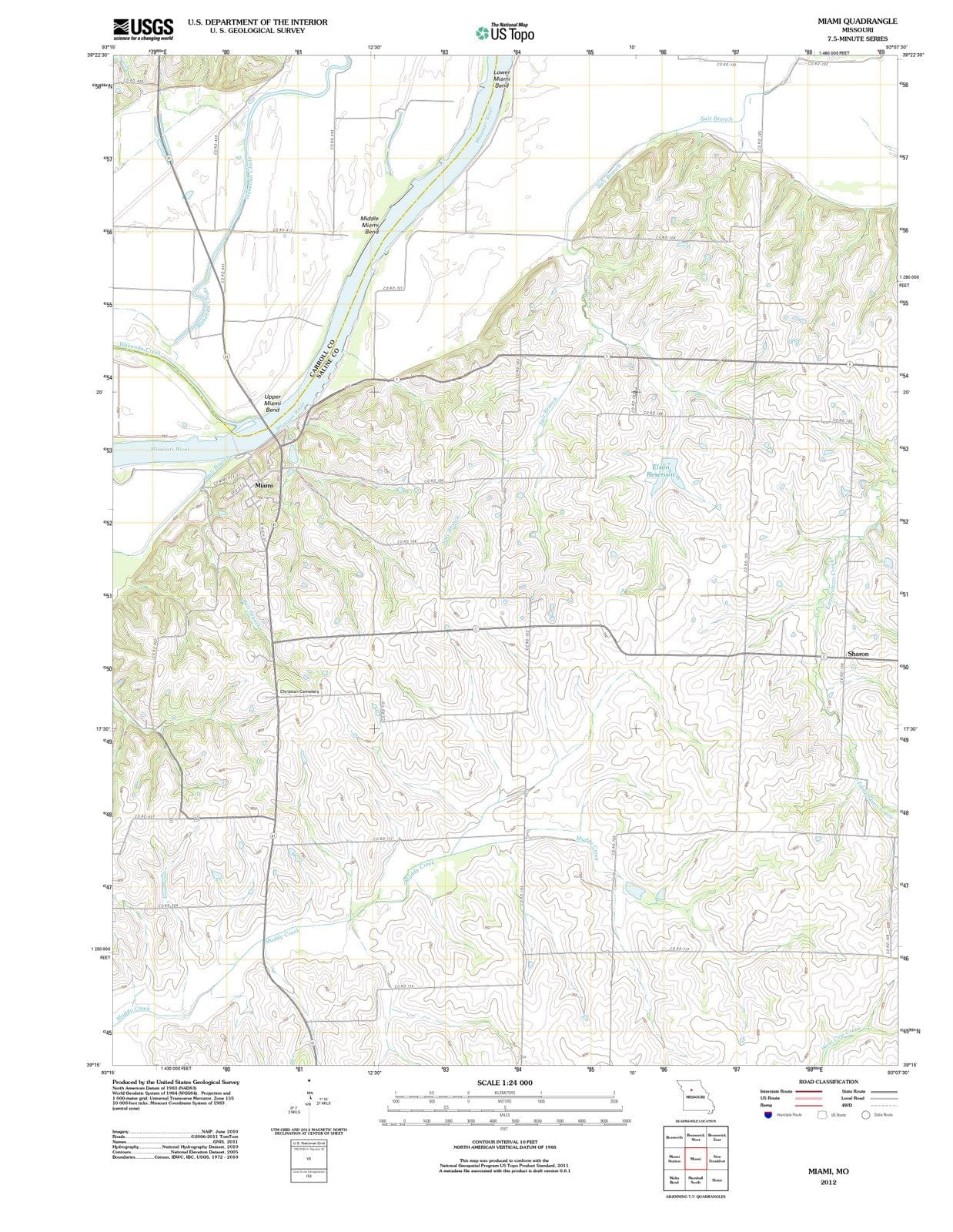 2012 Miami, MO - Missouri - USGS Topographic Map