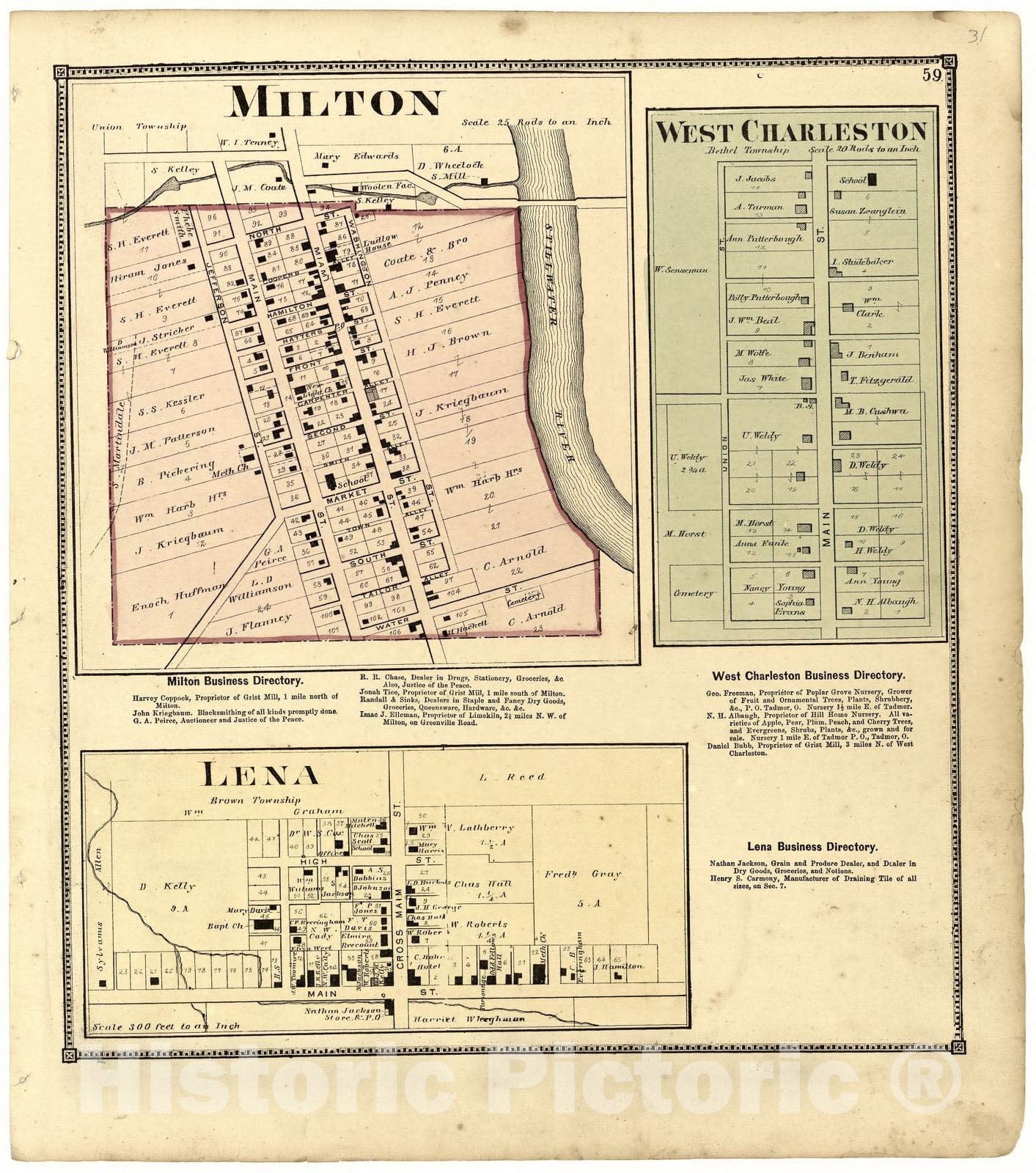 Historic 1871 Map - Atlas of Miami Co, Ohio - Milton; West Charleston; Lena - Atlas of Miami County, Ohio