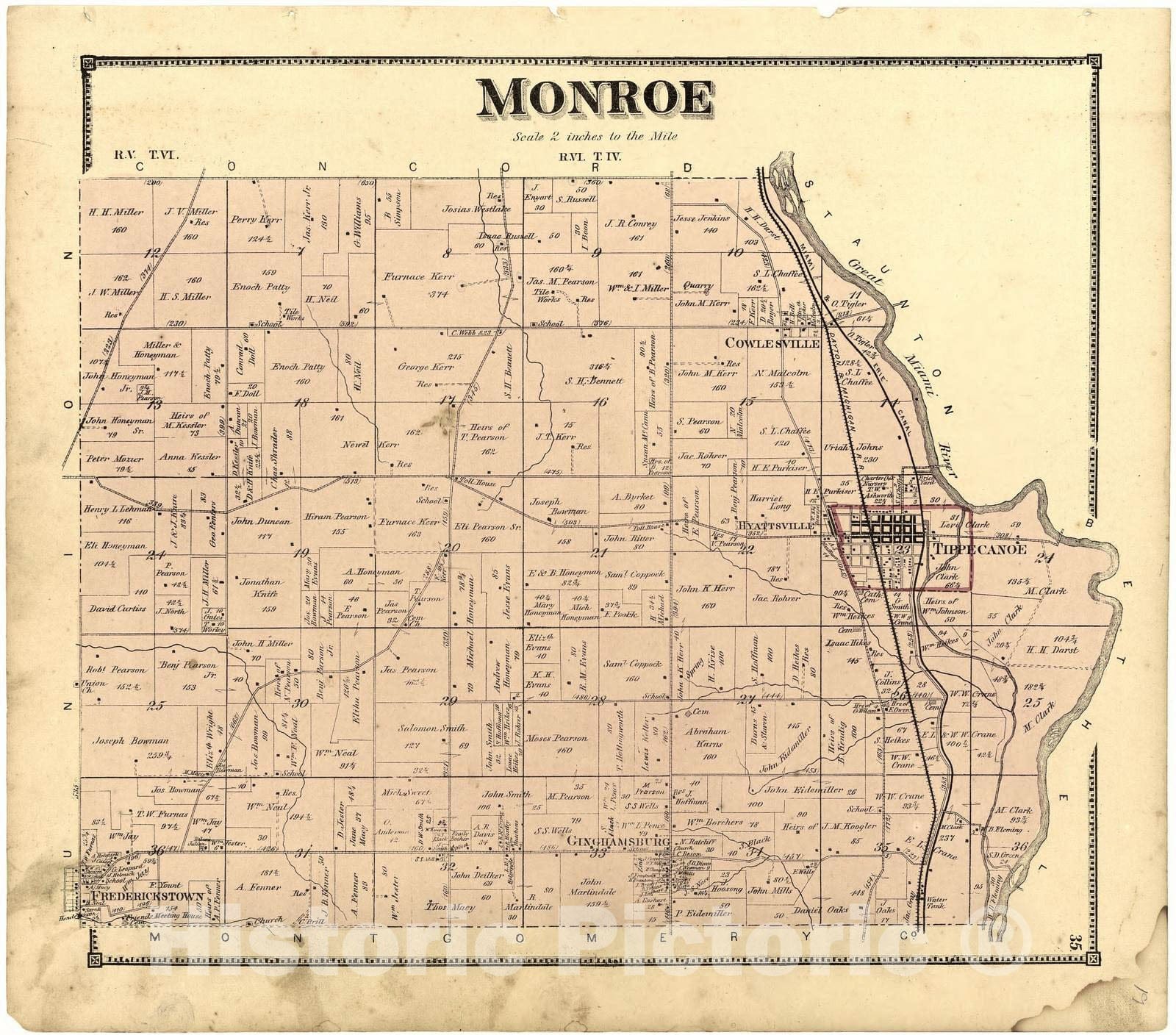 • Historic 1871 Map - Atlas of Miami Co, Ohio - Monroe - Atlas of Miami County, Ohio