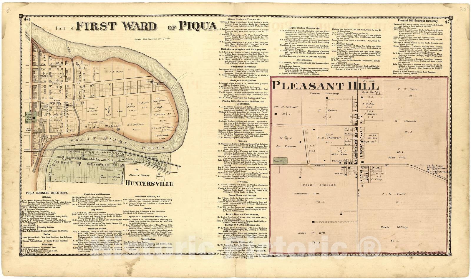 Historic 1871 Map - Atlas of Miami Co, Ohio - Part of First Ward of Piqua - Atlas of Miami County, Ohio