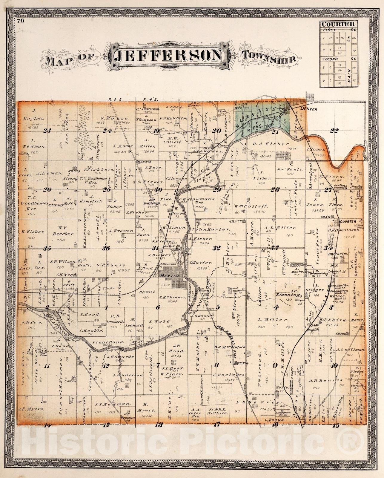 Historic Map : Jefferson Township, Miami County, Indiana., 1877, Vintage Wall Art