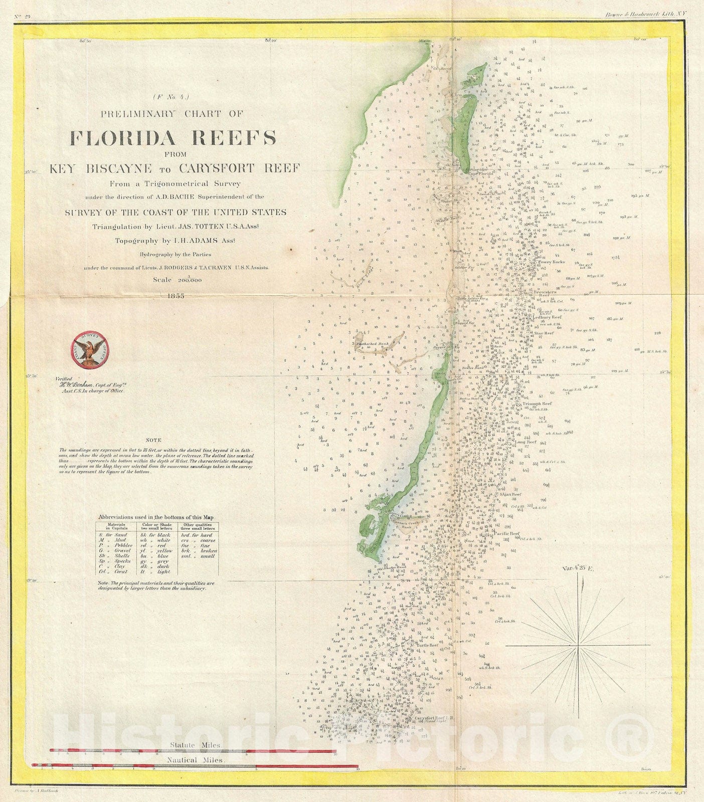 • .Historic Map : Key Biscayne, Miami, Florida, U.S. Coast Survey, 1855, Vintage Wall Art