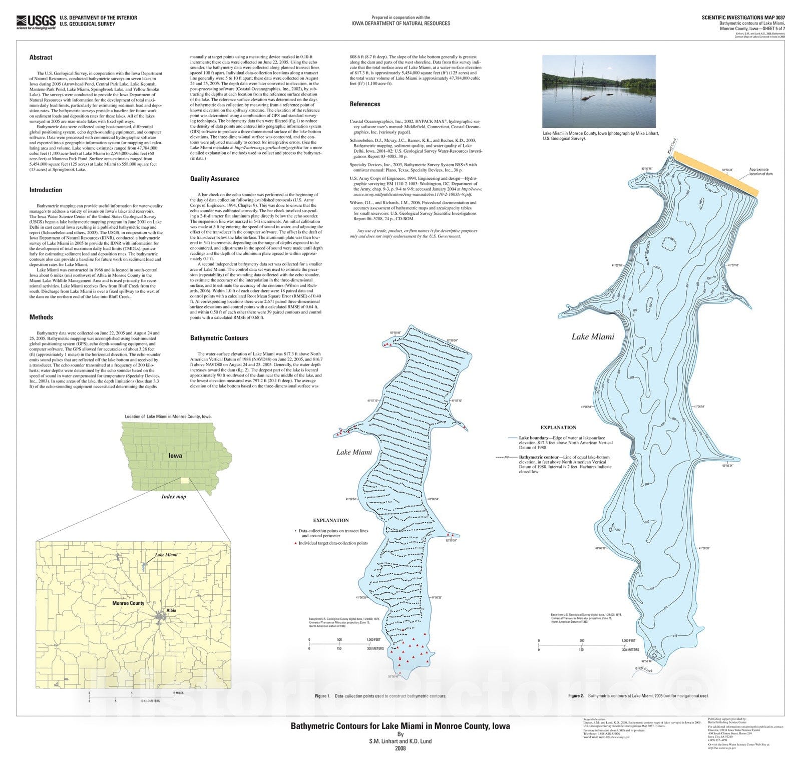 Map : Bathymetric contours for Lake Miami in Monroe County, Iowa, 2008 Cartography Wall Art :