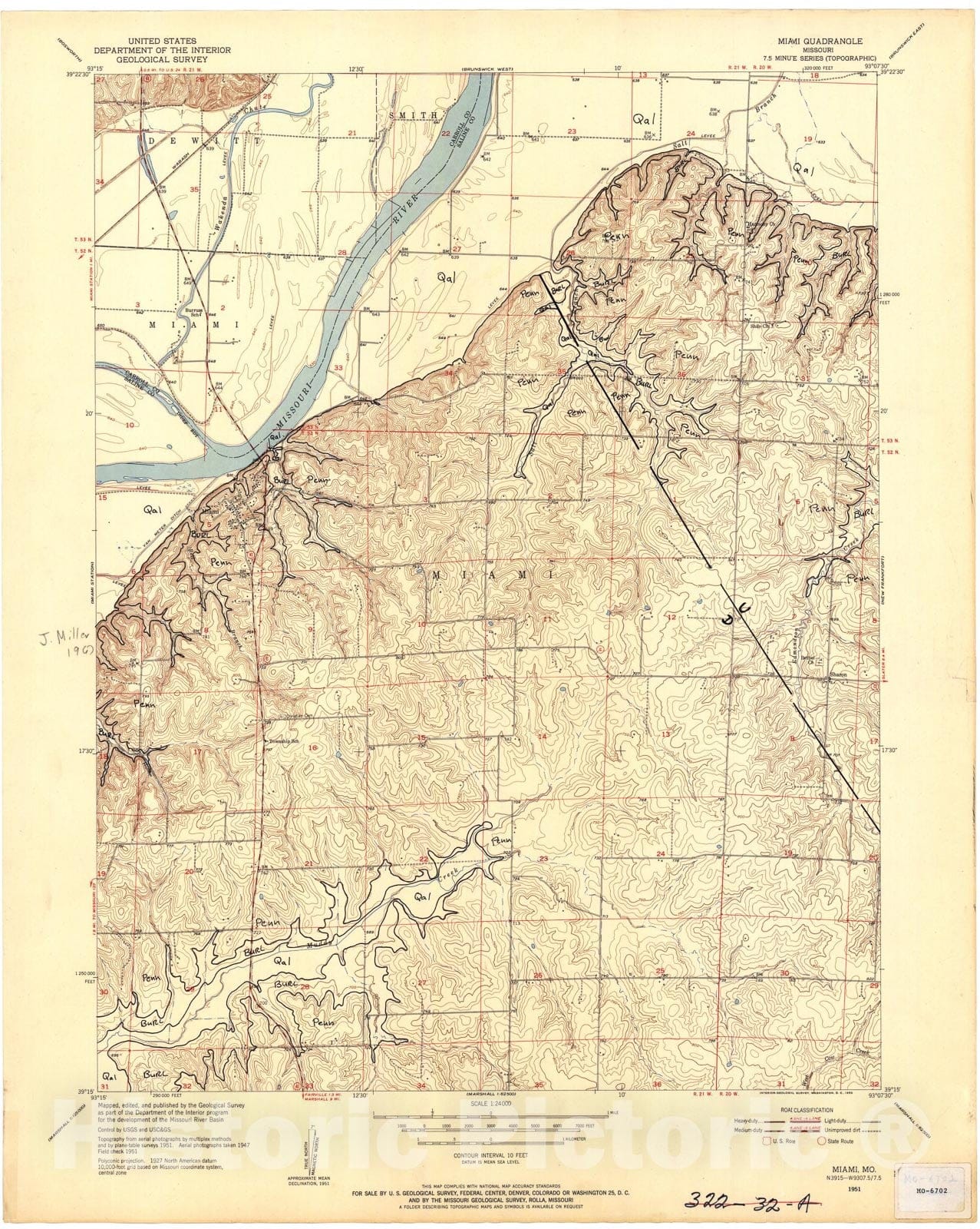 Map : Bedrock geologic map of the Miami seven 1/2' quadrangle, Missouri, 196seven Cartography Wall Art :
