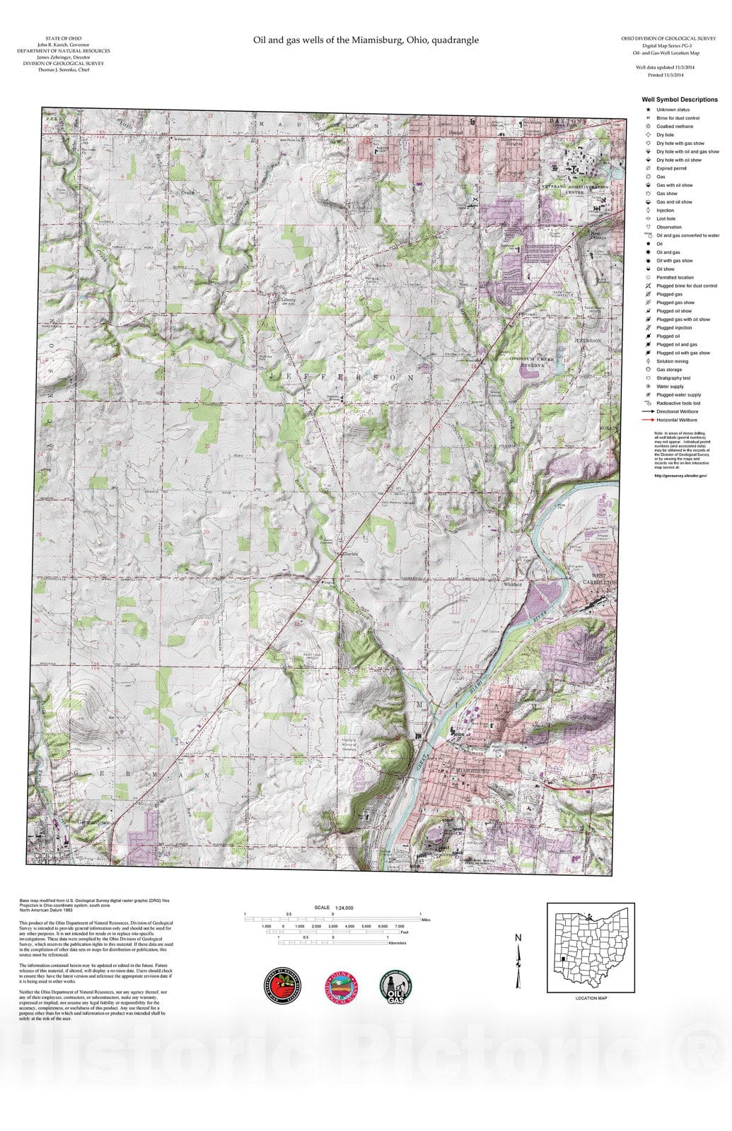 Map : Oil and gas wells of the Miamisburg quadrangle [Revised bi-weekly], 2006 Cartography Wall Art :