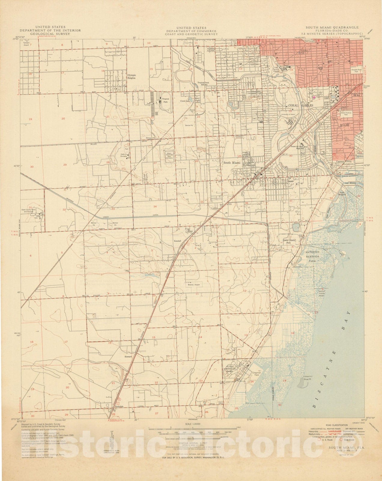 Historic Map : USGS 7.5 Minute Sheets and Quadrangles, Coral Gables & Miami & South Miami 1950 Topographic Map , Vintage Wall Art