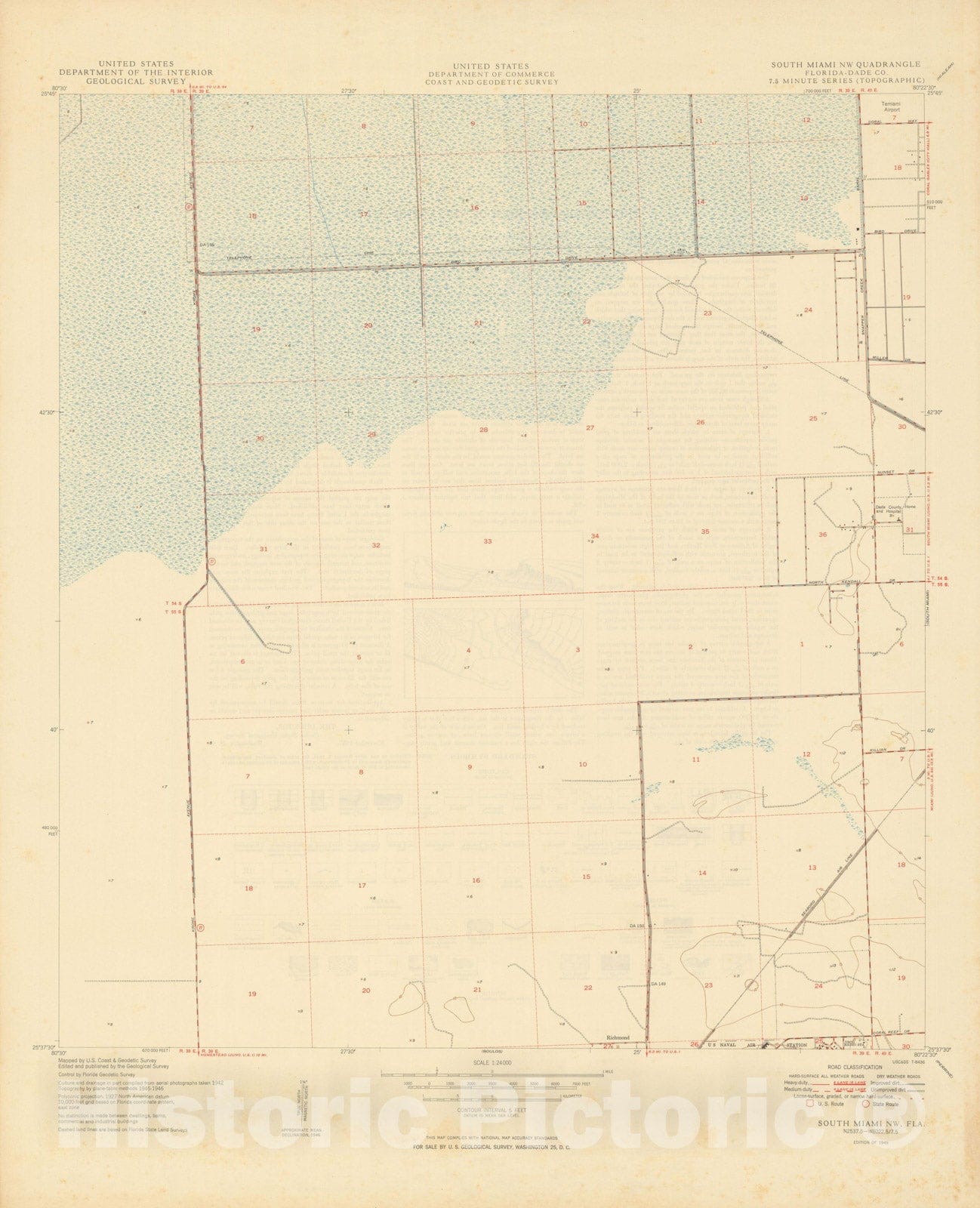 Historic Map : USGS 7.5 Minute Sheets and Quadrangles, South Miami 1949 Topographic Map , Vintage Wall Art