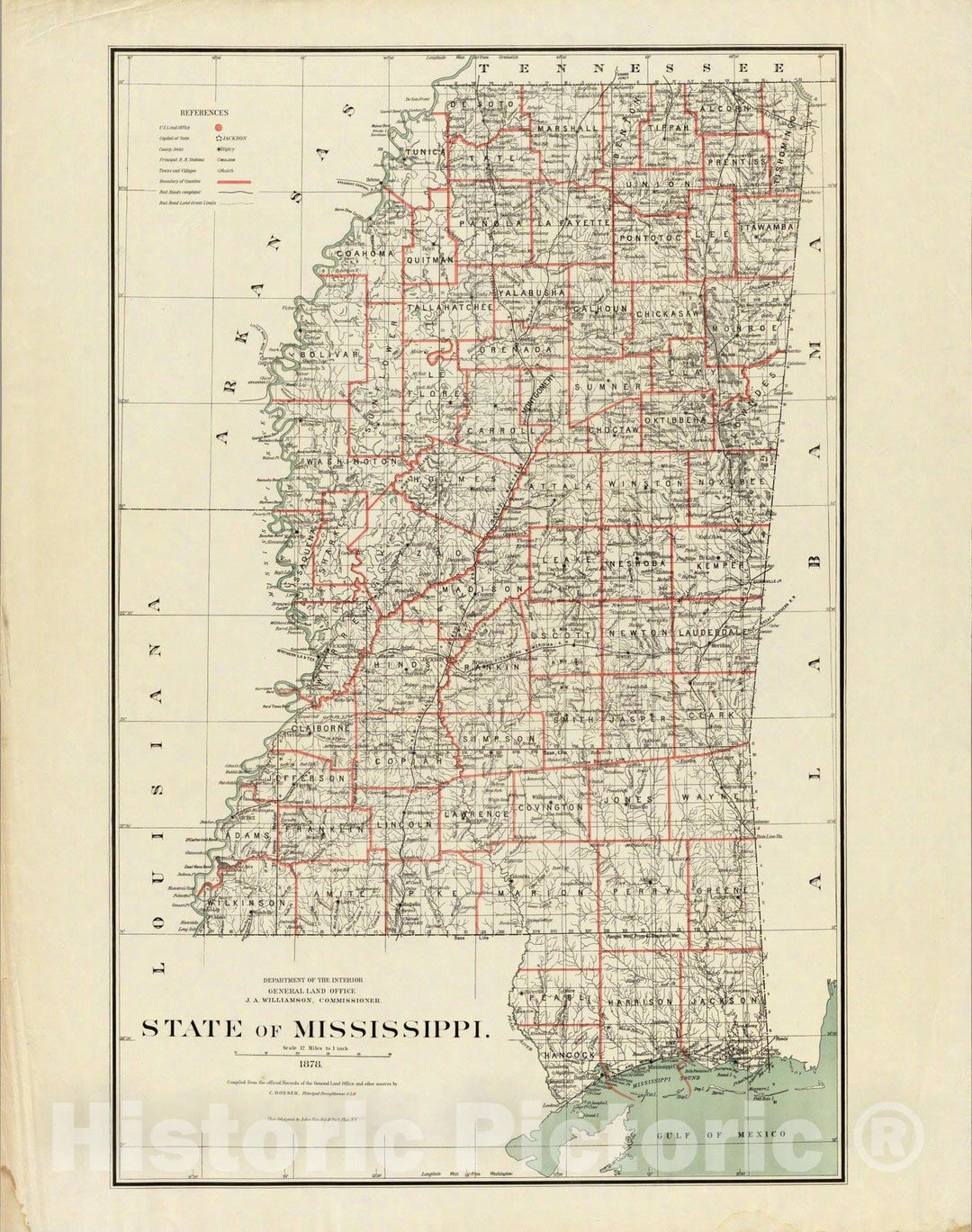 Historic Map : Department of The Interior General Land office Map - State of Mississippi. 1878 - Vintage Wall Art