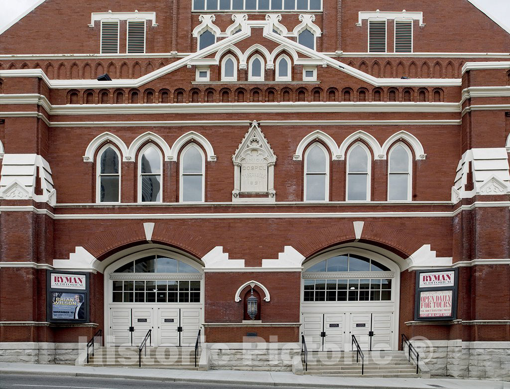Ryman Auditorium detail. Ryman Auditorium, a National Historic Landmark and former home of the Grand Ole Opry (1943-1974), continues its more-than-100-year music tradition.