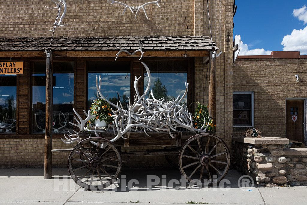 Photo - Elkhorns and an Old Freight Wagon as Art at The Traders Rendezvous Store in Gunnison, Colorado - Fine Art Photo Reproduction