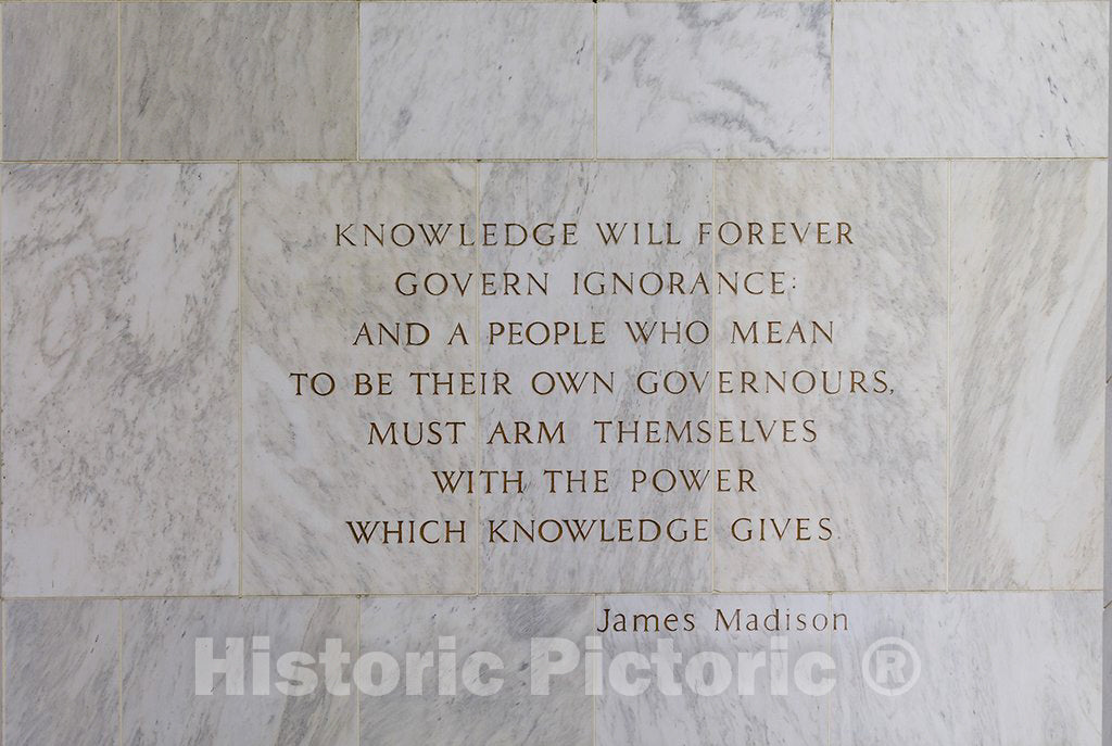 Photo - Exterior view. Detail at main entrance. Quotation from James Madison, beginning"Knowledge will forever govern ignorance . - Fine Art Photo Reproduction