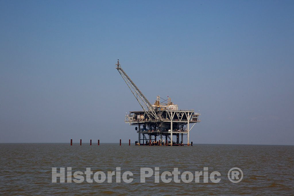 Photo - Ferries, Boats and Oil rigs All co-Exist on Mobile Bay in Alabama - Fine Art Photo Reproduction