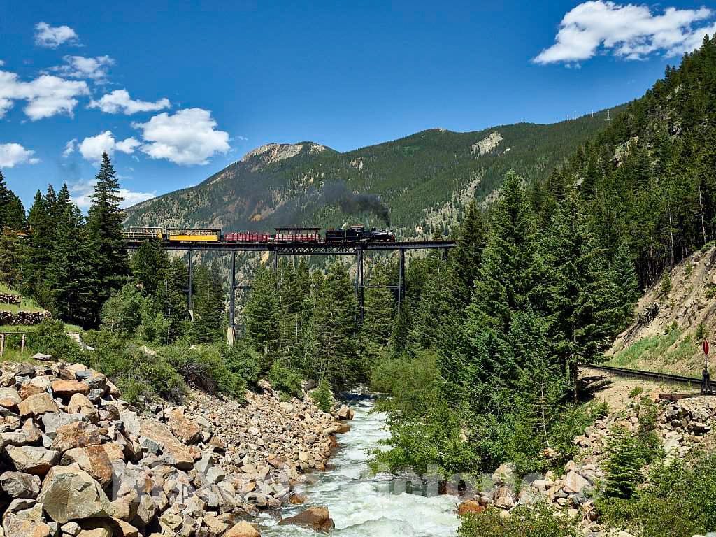 Photo - A Georgetown Loop Railroad Scenic Train Crosses a high Trestle Near The Rocky Mountain Town of Georgetown - Fine Art Photo Reproduction
