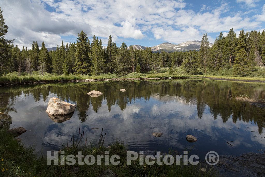 Photo- Pond on the basecamp grounds at Outward Bound, a strenous outdoor leadership school and physical-training venue outside Leadville, high in Colorado's Rocky Mountains