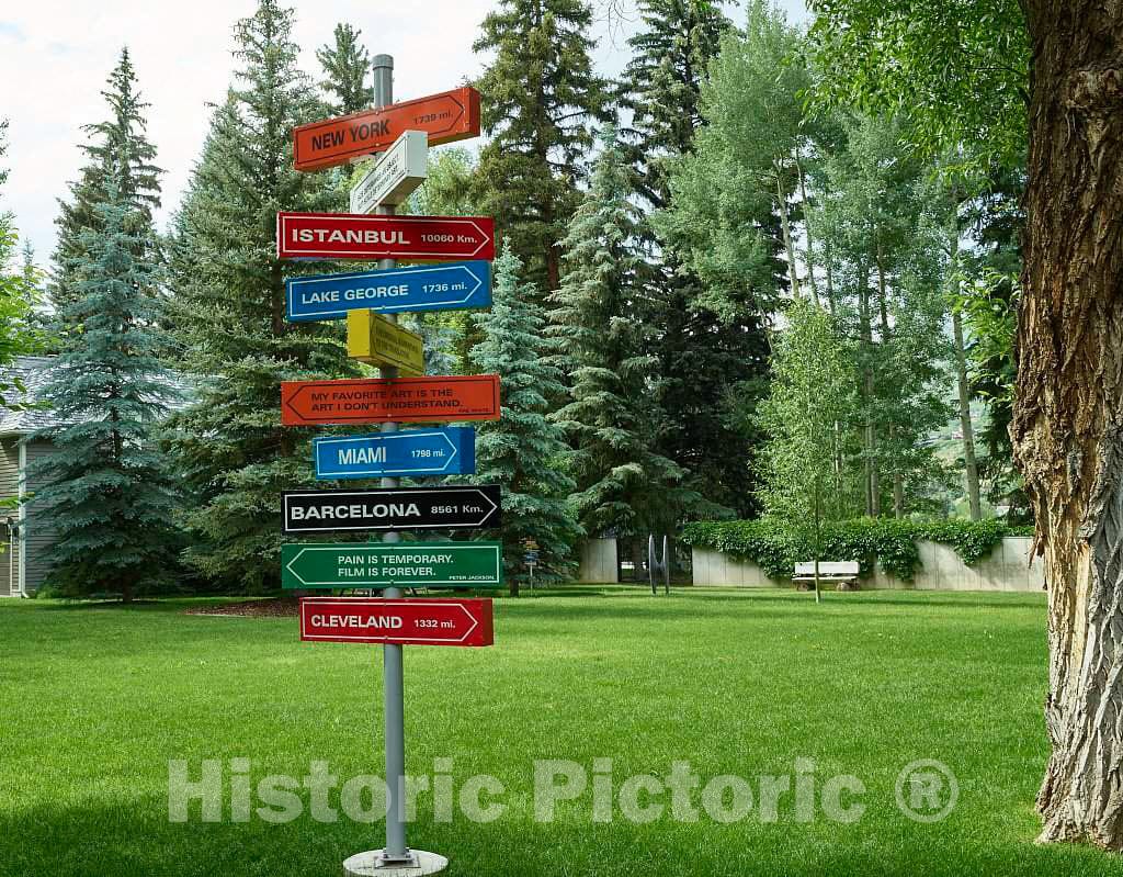 Photo - Signs to lots of places in the old mining town of Aspen, now a popular arts and skiing destination - Fine Art Photo Reproduction