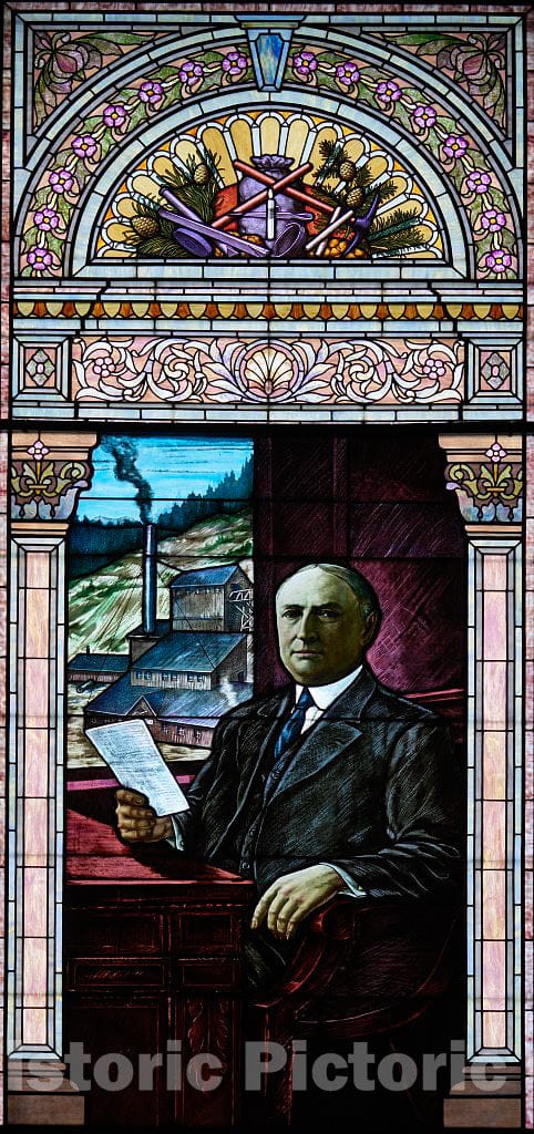 • .Photo - Stained-Glass Depiction of Early 20th-Century U.S. Senator, and Colorado Mining magnate, Samuel D. Nicholson in The Colorado Capitol' Senate Wing in Denver