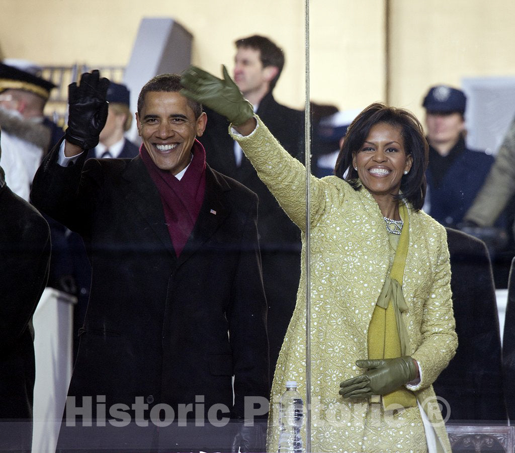 • .Washington, D.C. Photo - 2009 Inaugural Parade. Michelle and Barack Obama Watch The Parade from The Viewing Stand in Front of The White House, Washington, D.C.