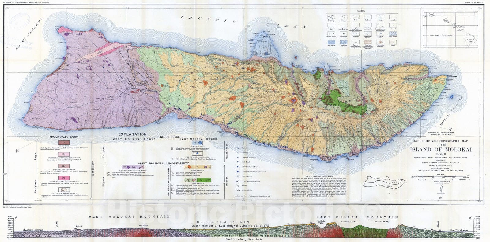 Map : Geology and ground-water resources of the Island of Molokai, Hawaii, 1947 Cartography Wall Art :