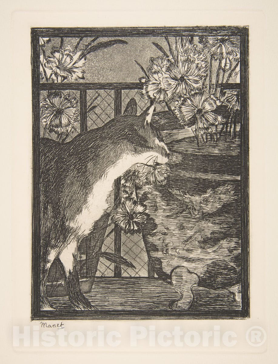 Cat and Flowers - French, Paris 1832-1883 Paris - Artist Nationality: French - Original Medium, Materials or Technique: Etching and aquatint; third (final) state; posthumous edition