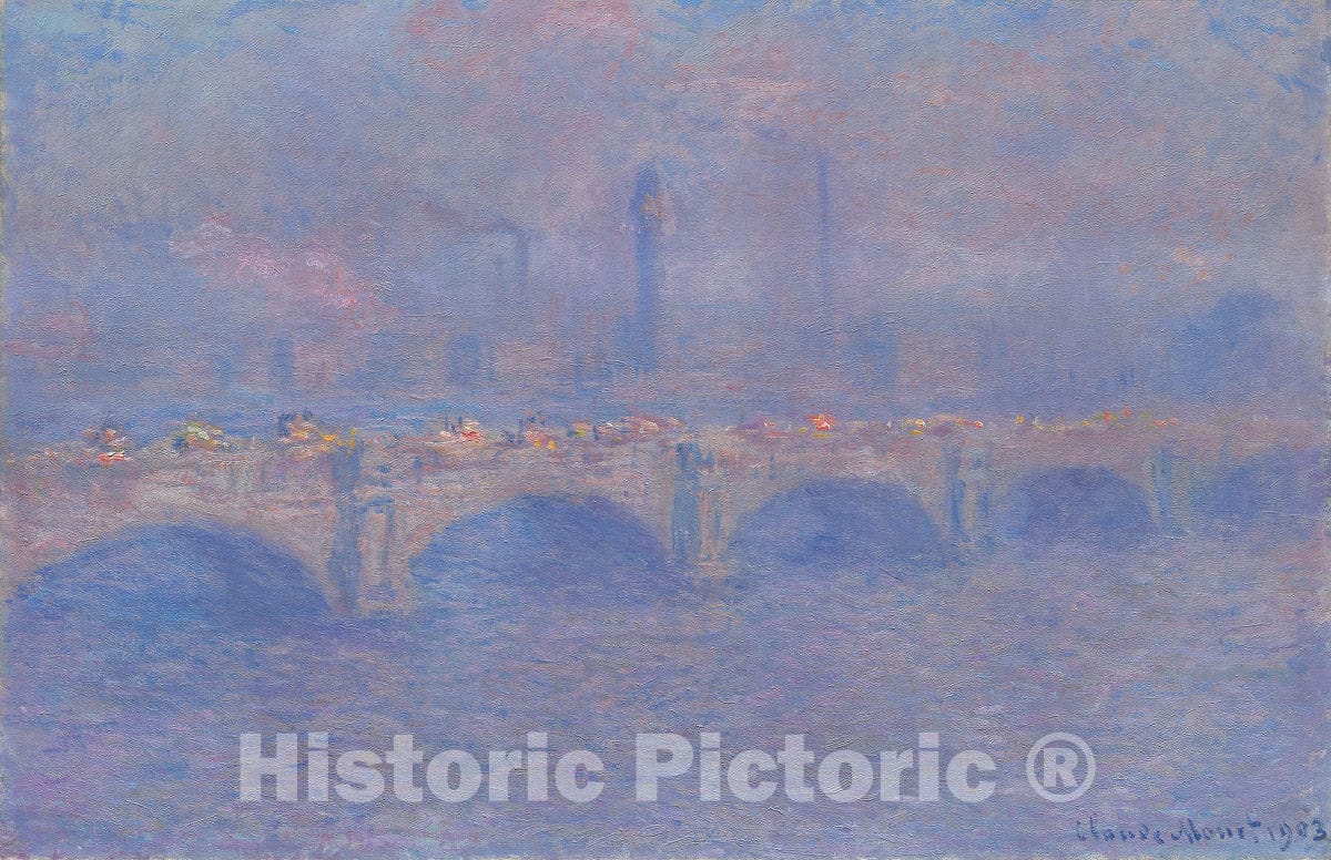 • .Art Print : Waterloo Bridge, Sunlight Effect, Claude Monet, c 1903, Vintage Wall Decor :