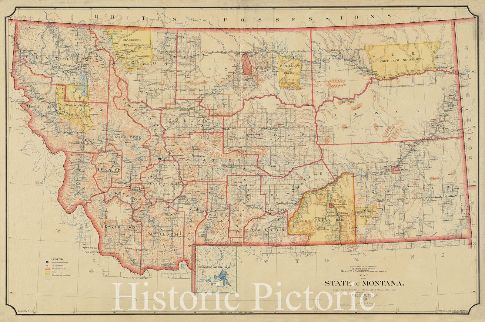 Historical Map, 1897 Map of The State of Montana, Vintage Wall Art